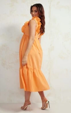 Maternité Robe Longue De Grossesse Orange Volantée Sans Manches