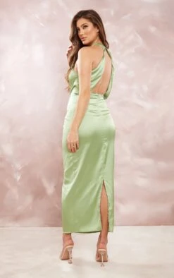 Maternité Robe Longue De Grossesse Satinée Sauge à Col Montant